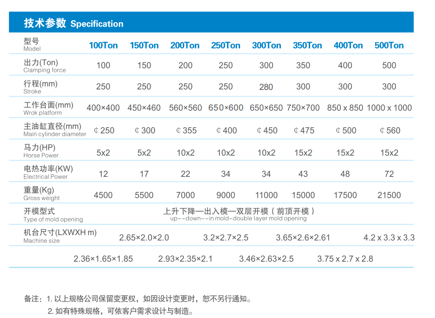 · 具可調試慢速合模功能,以適應不同模塊種類的成型條件;